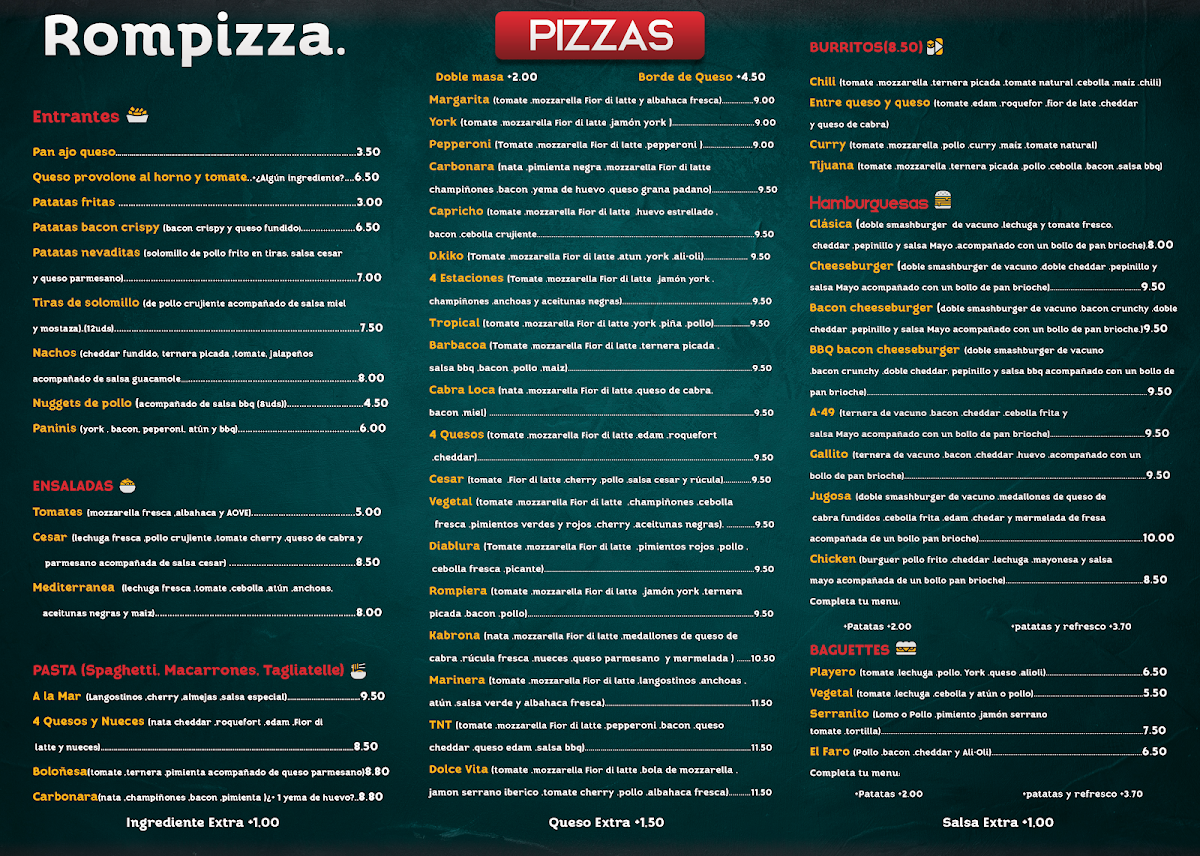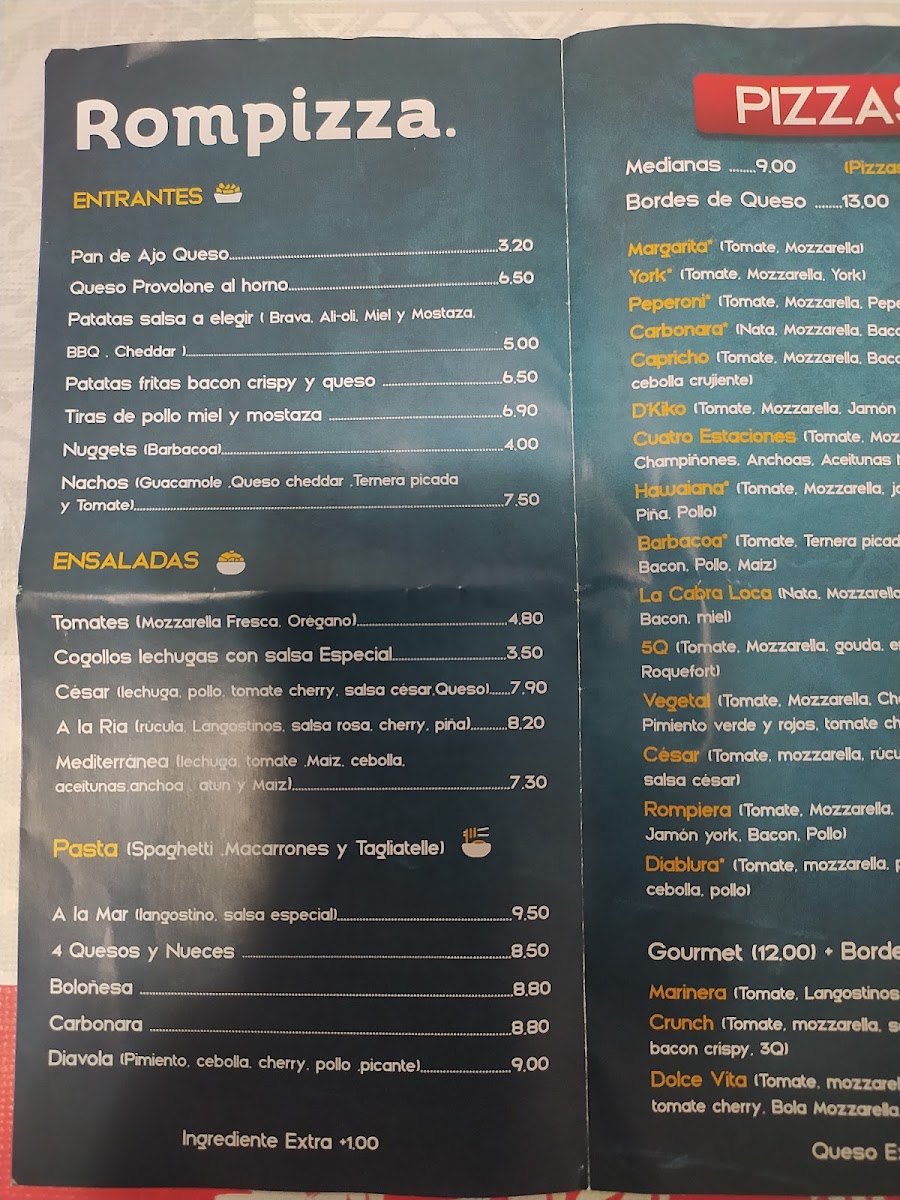 Introducing the mouthwatering menu at Rompizza, a gem located in El Rompido, Huelva, Spain. This delightful eatery excels in crafting a diverse selection of dishes that tantalize the taste buds.